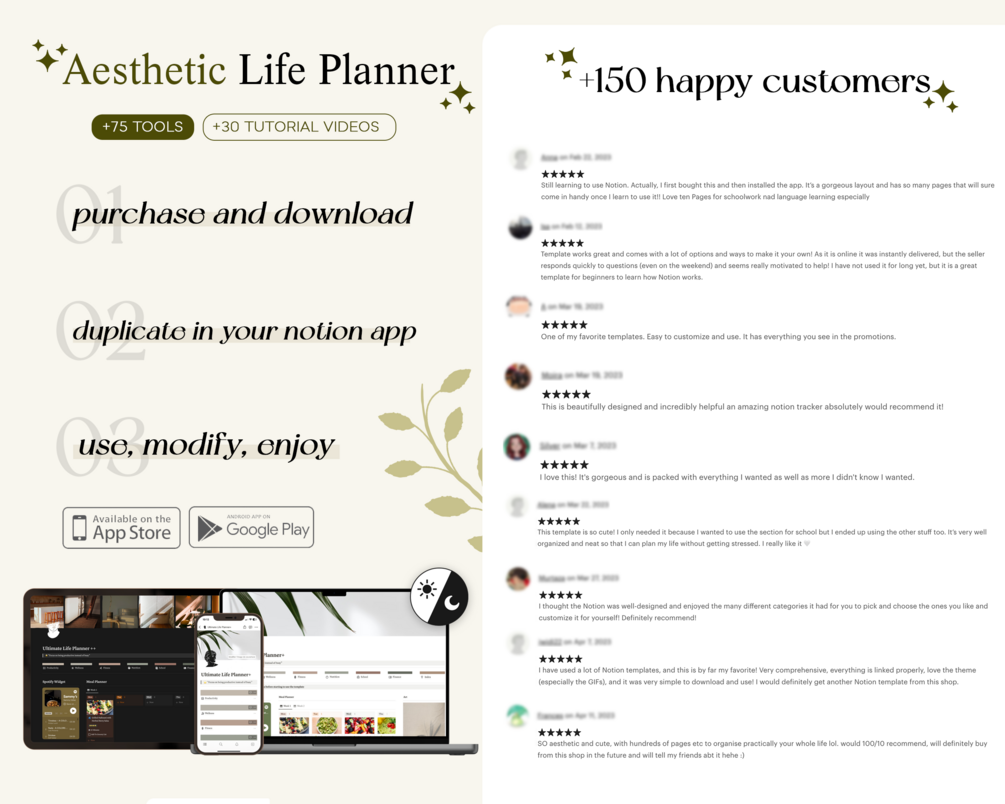 ★★★★★ : Still learning to use Notion. Actually, I first bought this and then installed the app. It’s a gorgeous layout and has so many pages that will sure come in handy once I learn to use it!