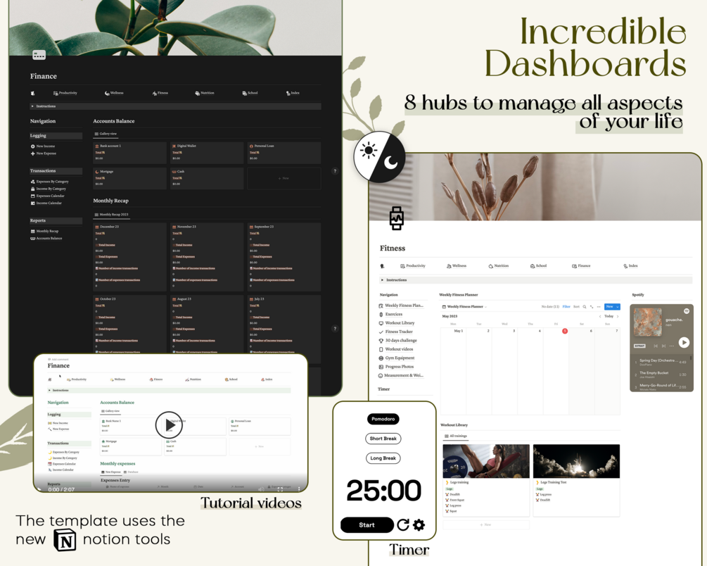 Organize your daily life with our all-in-one ultimate notion life planner. It's the only template you need to organise your life and achieve your goals. This powerful aesthetic notion template included many tools such as notion meal planner, notion fitness & workout, notion finance and more.