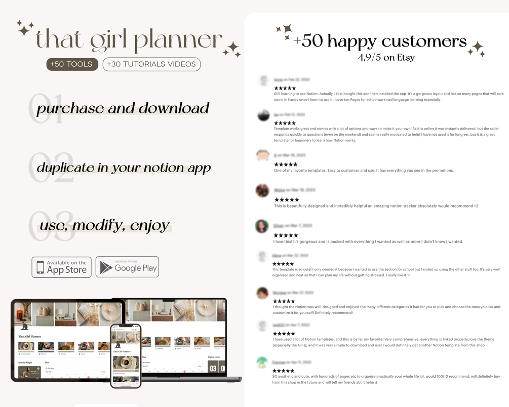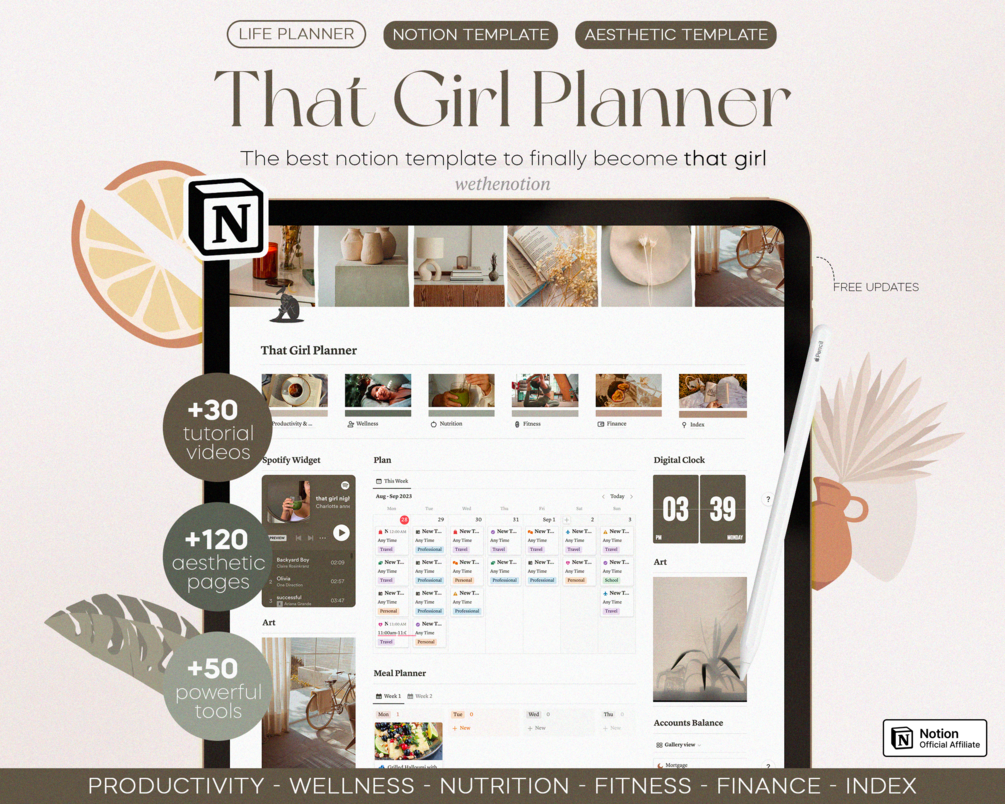 No need to buy several templates, you will find everything you need in That Girl Notion Template