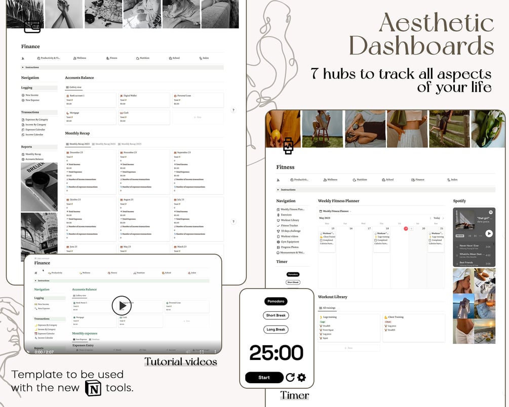 This Notion Template includes +50 pre-built tools & +120 pages. It's the only template you need to organise your life and achieve your goals. This powerful aesthetic notion template includes many tools such as notion meal planner, notion fitness & workout, notion finance, productivity & vision and wellness tools.