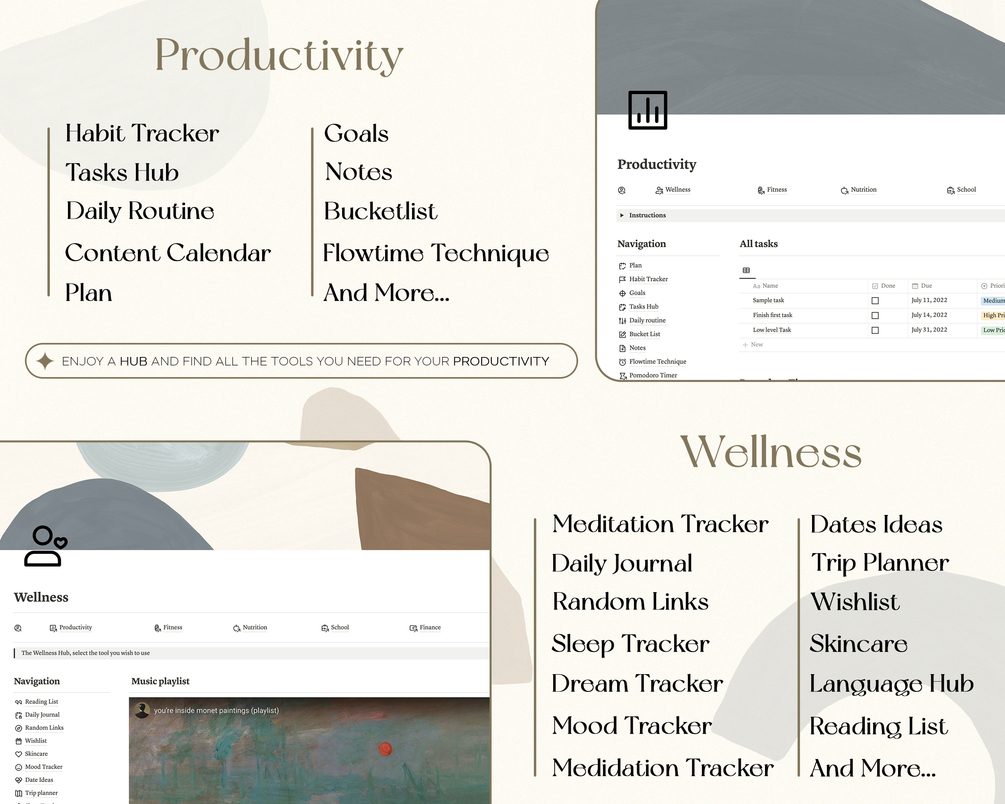 Are you looking for a complete template to manage all aspects of your life? Our all-in-one notion template is made for you. Enjoy the most powerful aesthetic notion template.