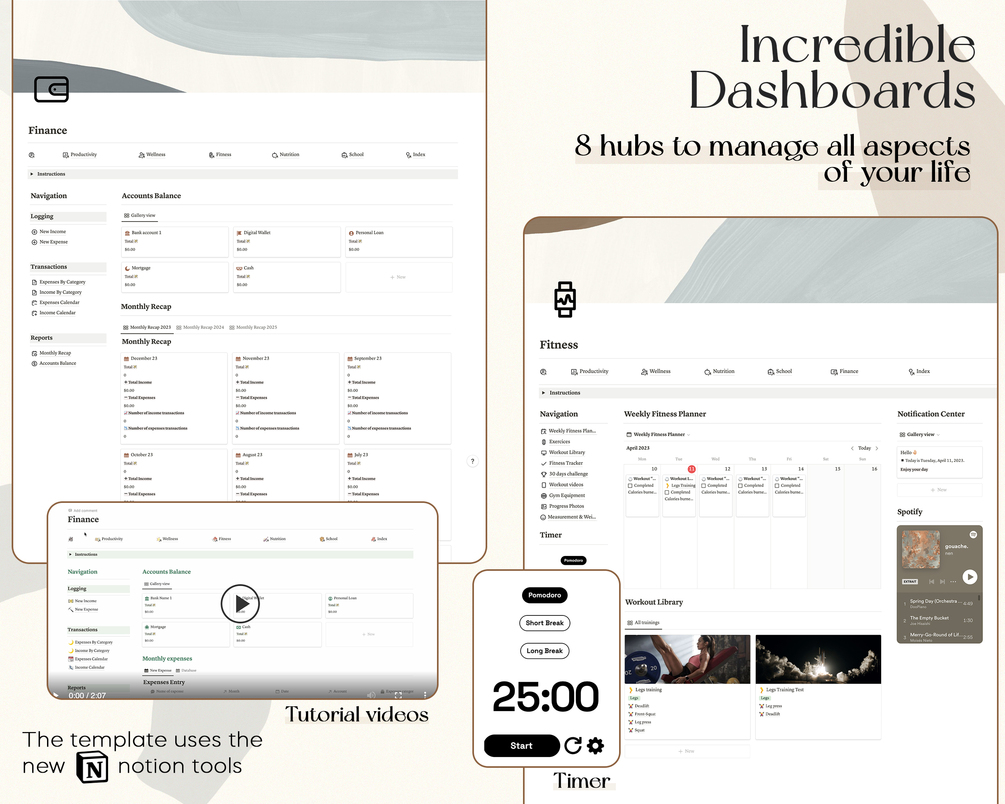 Organize your daily life with our all-in-one ultimate notion life planner. The Ultimate Life Planner Template includes +75 pre-built tools & +200 pages. It's the only template you need to organise your life and achieve your goals. This powerful aesthetic notion template included many tools such as notion meal planner, notion fitness & workout, notion finance and more.