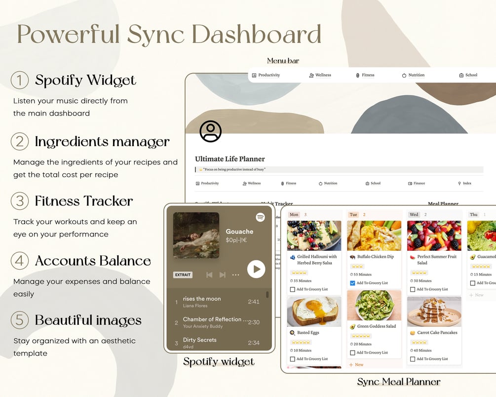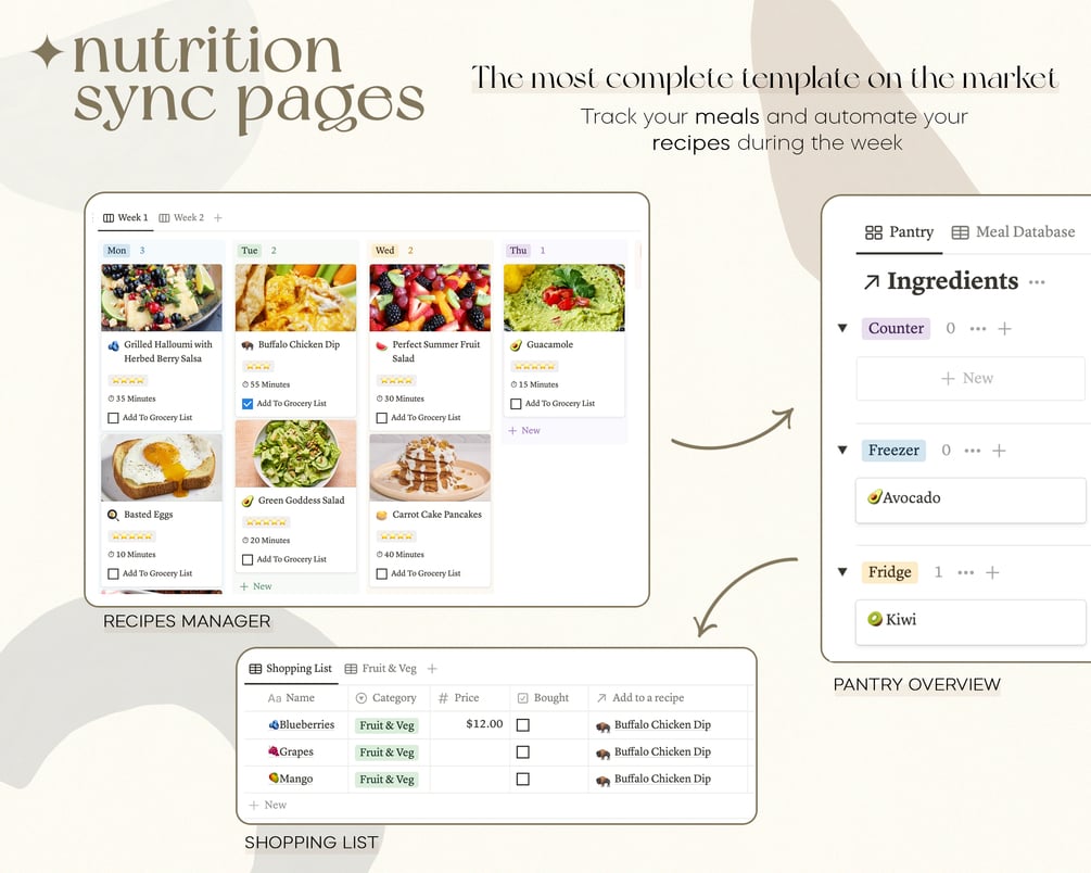 Enjoy new free tools & new features of notion : Spotify widget, meal planner, shopping list, ingredients database, pantry, buttons, cooking videos and more.